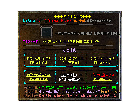 本服只适合喜欢复古-游戏变态狂-疯子-及03年之前的传奇骨灰玩家,喜欢快餐服变态服单职业的.远离此版!